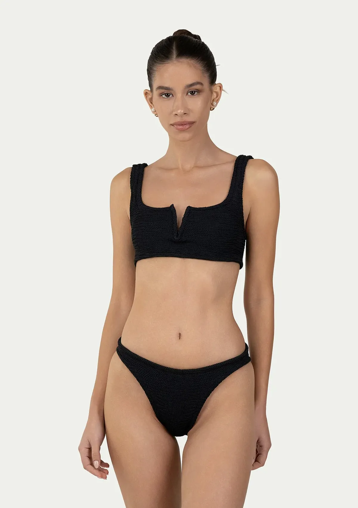 Купальник Paramidonna Serena в едином размере подходит для женщин в размере от XS до XL Кроп-топ с V-образным вырезом в комплекте с классическими плавками из жатой эластичной ткани