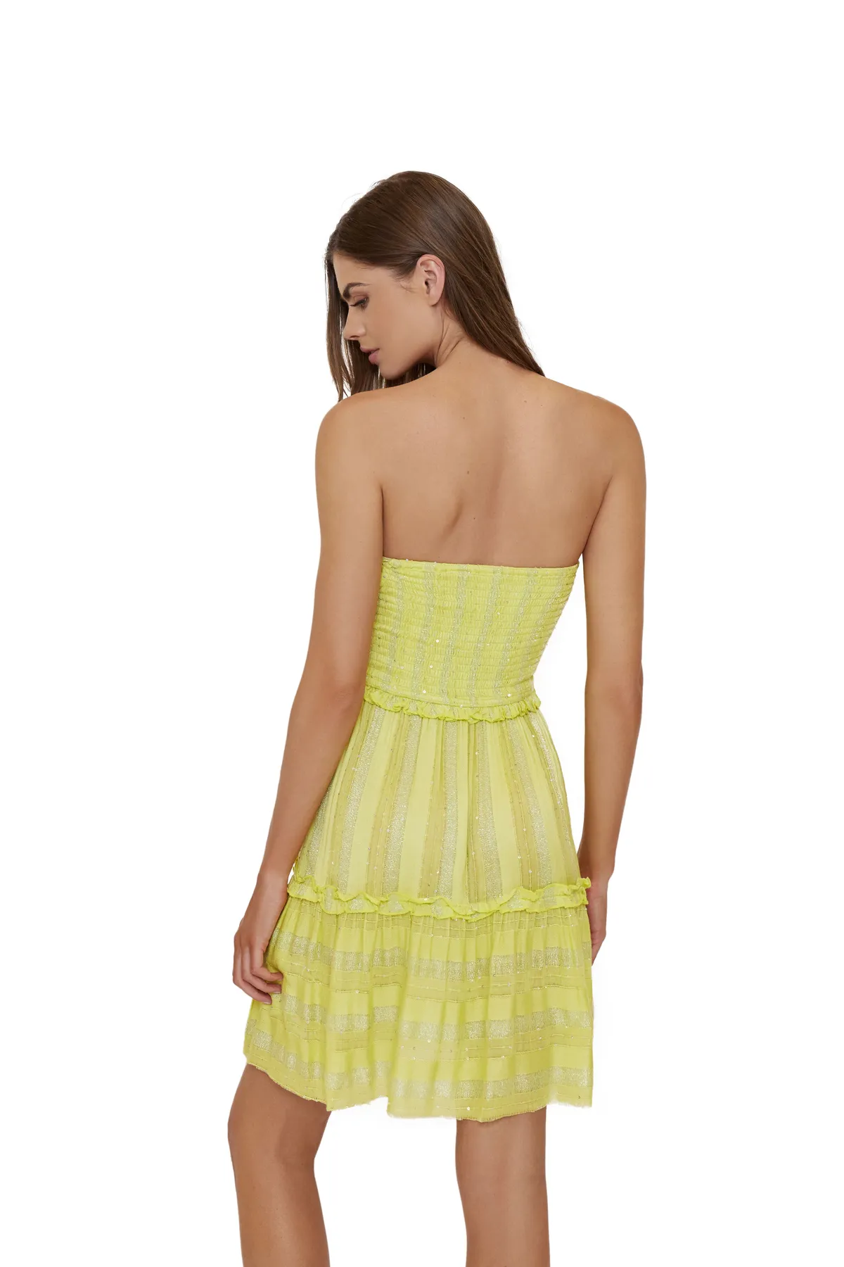 Мини платье на резинке из коллекции Pilyq Sunburst . Расшито мелкими пайетками.